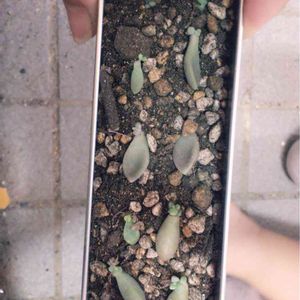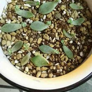 購入した姫秀麗 寄せ植えの時にポロっと葉っぱが。 葉挿ししてみたら、 少しずつ大きくなってきました🌱