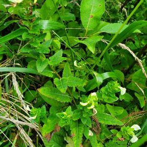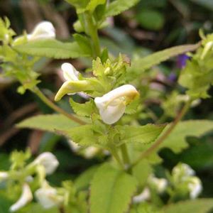 蝦夷塩釜 シオガマギク属 8月〜9月 葉は1-2cmの柄をもって茎に互生し、形は三角状披針形。葉の先端は尖り、基部は切形、縁は重鋸歯で葉の両面は無毛か、ときに毛がある。