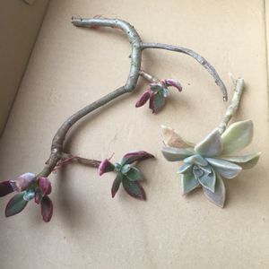 久しぶりの投稿になります。 教えて欲しい事があります。 写真の 多肉さん。旦那の実家の庭で 鉢から 飛び出すように、びよーん と 伸びてました。 義母に話したら、同じ鉢に花と一緒に寄せ植えされて居たそうです。 その後、花が終わり、庭に置いてたら 伸びたと…💦💦💦 で、この 2つだけ 分けて貰いました。 これを どうにか ちゃんとした状態で 復活させたいのですが、多肉初心者の私には さっぱり わからないので、 ここの、先輩の皆さんに教えて頂きたいです😅 どうぞ、よろしくお願いします。