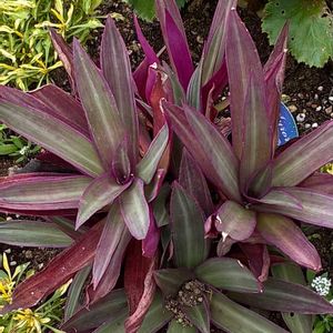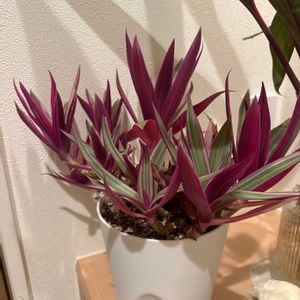 謎に思ってるベランダplantsと 初めて見る花。 トラディスカンティアのデカい版のような見た目のムラサキオモト。 150円という安価で売られててお持ち帰りしたけどどう育てていいか全くの謎😇とりあえず野外管理。 見た目は可愛らしく強そうです、株元沢山子ぶいてます。 隣のカラジウムには花が咲きました、去年は無かったので初めて見ます❤︎