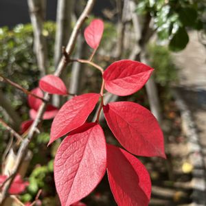 8日は葉っぱの発表会 ①真っ赤な葉っぱが綺麗でした。 お出掛け先にて ②通勤途中 紅葉途中? ③うちの子菊の新芽🌱 お花楽しみ ④うちの子ムラサキオモト 夏の間に大きくなりました。 今はお家の中です