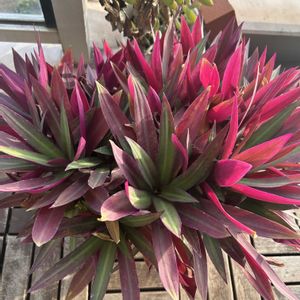 ムラサキオモト 我が家の双子💛💜です👯 2株とも、葉っぱの裏が濃い紫色で、風が吹くとコントラストがお気に入りです😍 1️⃣イエロースター 花ともちゃんから去年の秋にもらった株です😊無事冬越ししてくれました 2️⃣オーロラ 去年冬越し出来なかったので、改めてお迎えしました でも、去年よりも葉色が濃いです💦 お日様に良く充てると良いと聞きましたが、中々ならないです 3️⃣去年のオーロラ ね、葉っぱの色薄いでしょう