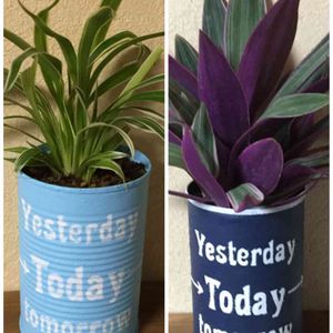 ノンフィルター!友達の作品に外斑オリヅルランとムラサキオモト植えました( ̄▽ ̄)友達のお店で販売予定!サイズはトマト缶です*\(^o^)/*