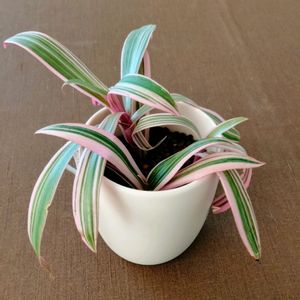 50円で売られていたので、お迎え 綺麗な色合い 鉢に植え替えし、吊るすことにしてみる(猫さんに噛じられないように) ロエオ トリカラー