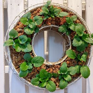 おはようございます👋😃 種蒔きからの虹色スミレのリースです。鉢植えよりも、小さめ😅花咲きが遅い。土が少なくて成長できなくて🙏💦💦。 9月にジフィーポットに種蒔き、11月末にリース台に定植。何色が咲くか分からず運に任せて。蕾見て😅濃い色が連続してたので、慌ててクリーム色↗️と植え替え。後は咲いてのお楽しみ。 今のままだと4種類⁉️違った色が咲きますように💕 (2023/1/23撮影)