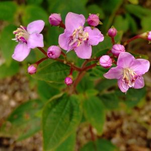 ①②ハシカンボク🌸の花が咲き始めました✨ シコンノボタンと同じノボタン科の植物です。 花は小さく紫色がかるピンク色 ③サンゴバナ 別名フラミンゴプランツ🦩 何かピッタリのネーミング〜こちらは又咲き始めました〜💗💕