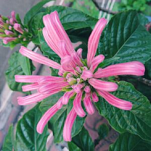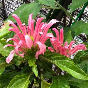 商店街の片隅に、見たことない変わったお花が次々と花芽をあげて咲いていました。これ、なんでしょうか? ハイビスカスのような夏らしい濃い緑の葉っぱの持ち主で、開いたお花全体のサイズは直径10センチ位。 サンゴバナと教えて頂きました。フラミンゴプランツとも言うみたいで、花びらのくねり方が、なるほどそんな感じです😍 SHIRAさん、ありがとうございますm(__)m