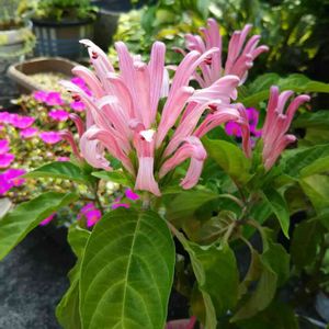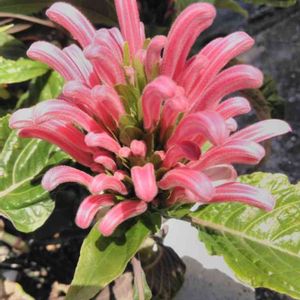 サンゴバナ 別名 フラミンゴプランツ キツネノマゴ科 ジャコビニア属 近くの直売所へ 出かけサンゴバナを 見つけました。 残念ながら非売品でした。