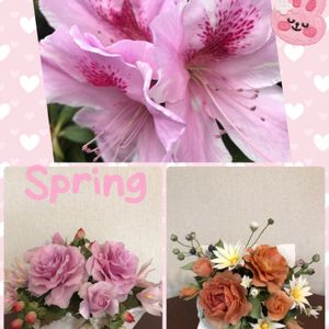 おはようございます🥀 お天気☀️で気持ちのいい朝です 暖かいのでお花達が次々と咲いて います ツツジも、、早いですねー 美容院の方に頼まれていた お花を作りました どちらがお好みかなー? でも母の日💗に と言う事でしたから 左↖️かも 暫く粘土を触っていないと 指が動きません(≧∀≦)