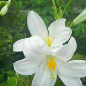 現在ではほとんど栽培されなくなり、世界的にも希少価値の高い、幻のユリ「マドンナリリー」。 19世紀に日本からヨーロッパへテッポウユリが伝わると、ヨーロッパ原産のマドンナリリーはたちまち消失していきました。その結果、今では世界的に希少価値の高い幻のユリとされています。聖母マリアの象徴とされ、レオナルド・ダ・ヴィンチなどの「受胎告知」の絵画に描かれる白いユリとして知られています。花言葉は「純潔」です。 小ぶりな真っ白のユリ⚜存在感あります。