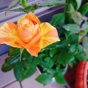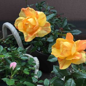 コルダナシリーズのミニバラが予想外の房咲きで、もりもり咲いて満開になりそう✨ 12月にお迎えした時はもう少し優しげなイエローだったけど、本領発揮したらオレンジに近い色で、花びら裏に赤が入ってけっこう逞しい感じ。正直期待外れなのですが、めちゃくちゃ元気な姿には感動します。 当初バラ栽培を嫌がっていた夫もすごい満開だよねー!と感心してるので、ま、いいか。 所々茶色っぽいのは、ハダニ対策のコーヒースプレーの影響です😅