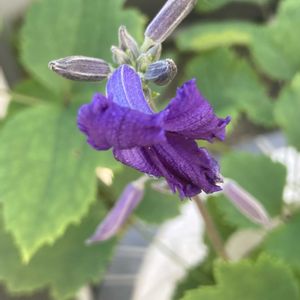 💙クレマチス 是空(ヘラクレイフォリア系 )💙木立性(草ボタン類)及川フラグリーンオリジナル品種 昨年お迎えしたクレマチス是空(ぜくう)鉢植え🪴ですが今年はどんどん茎を伸ばして6本の株立になり大きな葉と沢山の蕾がつき次々に開花しています。 お花は基本下向きに咲きますが真横を見たり真上見たり自由奔放に咲いています。 草ボタンからの品種改良?!のようです。 🏷️水曜日は水色