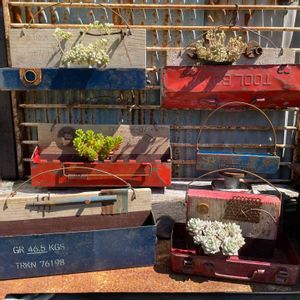 ○ Tool Boxプランター🍀 オーダーいただいたものも含め作りました✨7月末から行く清里にも持っていきます♪ □サンメドウズ清里スキー場 7/30(金)〜8/1(日) 8/6(金)〜8/16(月) 8/21(土).22(日) この予定で出展します✨
