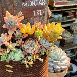 2021.4/5 昨年の9月にイクラさんに作ってもらった寄せ植え✨セダムが気持ちよさそうに暴れてる🍀暴れてるけどバランスがいい😃寄せ植えの最初がしっかりしてると暴れてもいい感じなんだなぁ♪✨ 今週末の4月10日(土)11日(日)はGreen Snap Marche(神奈川県横浜市)に出ます🍀