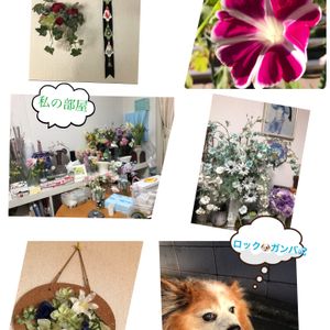 今朝の朝顔とロック🐶 お散歩🚶♀️🐶 6時前でも暑かったねー💦🥵 コロナ🦠騒ぎから 何もやる気がおきなかった お花作りを又始めました しかし指が動かない 正直ですねー⤵️ お花の形がなかなか出来ません 私の部屋、作業場のようです ゴチャゴチャ(๑˃̵ᴗ˂̵)ガーン