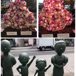 🌟⭐️💫金曜キラキラ⭐️🌟✨ 駅前に造花で出来たサザエさん 今年はないのよねー (去年撮った物です) 夜になると電気🌉がついて綺麗でした 昨夜に撮ったご近所マンションの 🎄クリスマス🎄イルミネーション⭐️🌟✨