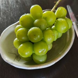 食欲の秋 味覚の秋🍂 毎年 ピォーネを送ってくれる次男が 今年は出遅れてしまった!と送られて来なかったが、、、、、、ちょっと寂しかった、、、、、、笑😆 忘れた頃に 嫁さんが 何か届くと思いますよーー、、、、、、と待ってたら本日シャインマスカットが届きました 北海道でも試して苗を植えて見た友人がいるが 巨峰・ピォーネ・シャインマスカットなどの大粒の葡萄は なかなか 無理が有ります 早速 相方はパクパク食べ、、、、、、、、、😖もっと味わって食べなくちゃ、、、、、、😮💨😵 勿体無い精神が、、、、、、あぁ 貧乏性な私は、、、、、、😭 房ごと 出したのが間違いでした😑 😨😰😱