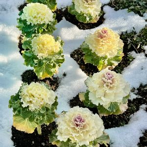 クリニックのまだ雪のある花壇に白い葉牡丹が綺麗❣️ 🏷️花散歩 🏷️冬色白い世界
