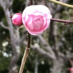 まだまだ満開とは言えませんが、ピンク色のウメを代表して「八重寒紅」のお花が少し咲きました。📸🌸😊😄🌞👌