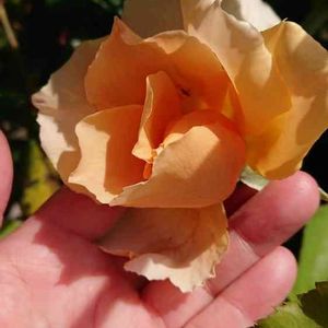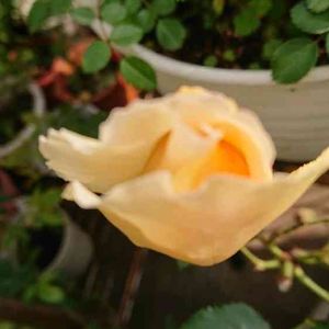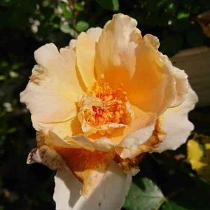 おはようございます、ジャストジョイがやっと開きましたちょっと中の方の花びらが変色してました 雨続きだったからですかね?