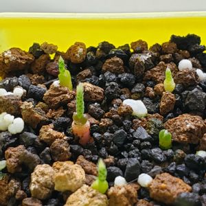 ミ~は実生のミ~🎵😆 1月頭に発芽して 約3ヵ月育つかどうかも 分からないので出してなかったけど 小さくて成長遅いながらも 双葉(リトープスみたいな状態)から 本葉?を出しはじめ アボニアっぽい雰囲気が 漂ってきた…かな😅 アルストニーって売ってるの見ると ちっちゃくてお値段も結構な…と 思ってたけど この成長の遅さだと納得よねぇ😒 うまく夏越せると良いんだけど 何事もチャレンジ💪