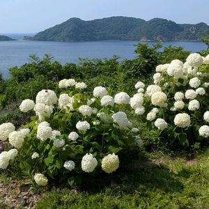 こんにちは😃 今年も美保関のアジサイロードへいってきました。♥️💙💜🩵🤍 日本海とアジサイのコラボは素敵です。💕