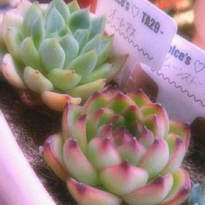 二和園さんからお迎えしたカンテさま✨✨ 外の方、カサッカサっだけど、水色にピンクの縁取りがとっても美しいです😍 元気に夏を超えられるかな・・💦 綺麗でいてね❤️
