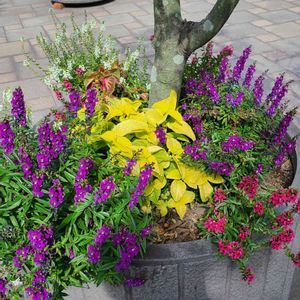 ❇️アンゲロニア3種他の花壇 宝山ホールの道路向かい中央公園にある地下駐車場🅿️「セナ602」の出入口を出てすぐの所にあったコンクリート花鉢。綺麗に咲いていた✨💖