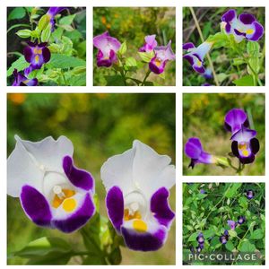 この花と最初に出会ったのは、「優しい色だなあ」と お礼状にと求めた絵葉書のpicでした😊 その後、GSの沖縄の花友さんのpicで、「ベンガルヤハズカズラ(矢筈葛)」と 知りました😍 近所のカイヅカイブキの生垣の上に這わせてあるつるに、最近綺麗な花が咲いているなあとpic撮影したら、ベンガルヤハズカズラだった😳 まさか、こんな近くで出会うとは✨💕💕嬉しい😃🎶 インドから東南アジア原産のキツネノマゴ科ヤハズカズラ属 高さ10m以上に伸びる常緑のつる性多年草。寒さには弱い。 青紫色💜の花筒、内部は黄色💛。葉の縁に歯牙がある。 東南アジアでは、一年中咲くが、日本では、夏から初秋に開花。