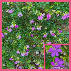 親戚の明治生まれの伯母が、亡くなる前に、「これを植えなさい」とくださった。 冬の寒さには弱く、枯れたかなと思っていると、根は大丈夫、復活しました😳👌 花友さんに、「クフェア(メキシコハナヤナギ)」と教えてもらいました✨💗 料理のレシピなど、チラシに鉛筆書きして、畑にも季節の野菜を沢山育てていたのを思い出します。 昔の人は、物を大事にしていたなあ😌 大事にしてますが、名前がわかりません。