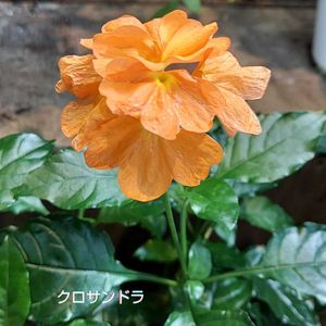 クロサンドラ 鮮やかなオレンジ色 濃い艶の有る葉も美しい…