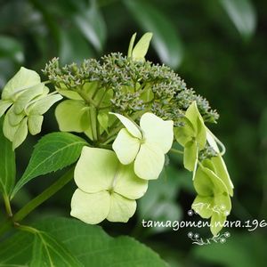 アジサイ(紫陽花) 淡い緑色の紫陽花のお花さん (˶ᵔᵕᵔ˶)