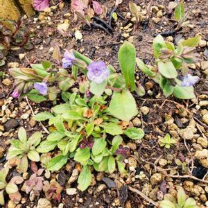 プルモナリア~✨✨ すぐ下にくっ付くように生えているのは雑草? この季節、雑草か新芽か分からず少しの間育ててます😆🌱 わかる方いたら教えてください(´- `*)♡