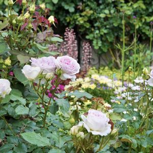 第1回花ごころ花友バラ友企画で、貰ったバラ クルールデラムールか次々咲いています✨ 美しい花色にうっとりです💕上品ですね〜 中輪で1枝に複数咲く感じです。