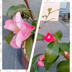 匂い椿 港の曙(左) 桃色地に底白ぼかしが入る、一重 猪口咲き 極小輪 多花性 椿には本来、香りがありません。一方、ルチエンス(姫山茶花)は椿類の中では芳香が強く、このヒメサザンカとの交配によって作出されたのが港シリーズで、香りがあり、匂い椿と言われます。 港の曙はツバキの園芸種「関東月見車」とヒメサザンカの交配種で、極小輪の筈ですが、ウチのは中輪くらいあります。 デカいw 匂いもあまりしません^^; ヒメサザンカの血が薄いのかも知れませんw 伊予侘芯(イヨワビシン 右) 濃紅色 一重 猪口咲き 侘芯 極小輪 一般的に侘芯椿とは葯の退化した「侘芯」と呼ばれる花芯(雄しべ)を持つものの事で、有楽(ウラク 太郎冠者)を親に持つ侘助、有楽を親に持たない侘芯と区別されています。 この伊予侘芯は愛媛県の石鎚山の野生ヤブツバキから選抜された侘芯椿らしいです。矮性で慎ましやかな佇まいです。この花の小ささが良いんです(*^^*)