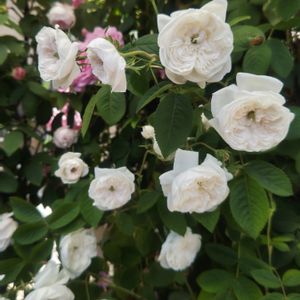 マダム アルディ🤍 先週くらいに一番まとまって咲いていた頃の写真です💞 あまり剪定せずに伸ばしてきましたが、一度長い枝は切って自然樹形みたいに仕立てようかなぁ🤔