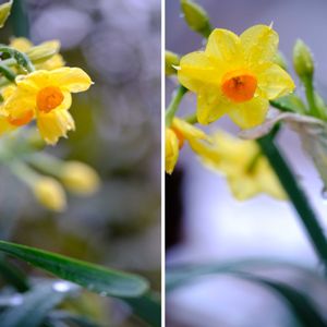 土曜の朝の撮影です。 ニホンスイセンも中心はオレンジです。