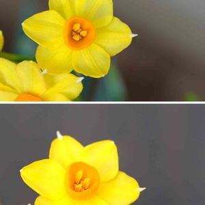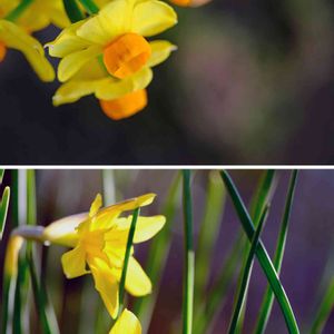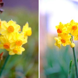土曜の朝の撮影です。 黄色とオレンジ。 そういえば赤い水仙って見たことないですね。