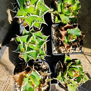 ①~③ピーコッキー…思ってたアガベと違う。 棘もかっこ良くない 葉数増えたら好きになれるかなぁ…。 しかし、私にとっては大きいから早めに鉢上げしないとな。 脚の怪我が治ったら考えよー。 ④⑤こちらは、小ぶりながらイイ感じ♡