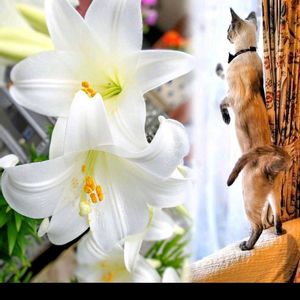 Viva〜❗❗(バンザイ) 今日は『世界猫の日』なんだって🩷🩷 わが家のビバーチェ😻🐾も ㊗️お祝いに駆けつけました〜🤗 ご近所で咲いていた 高砂ユリ⚜️とともに〜