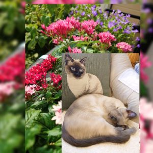 22 日はニャンニャン祭り〜❗ 夏の終わりの陽光は 眩しすぎて〜by Vivace😻🐾 ベランダのペンタスとともに 5枚目は生徒さんに指差し笑われちゃった おっさん寝〜🤣✌️ 🏷️にゃんこまみれ 作ってみました。 使ってね🩷🩷🩷