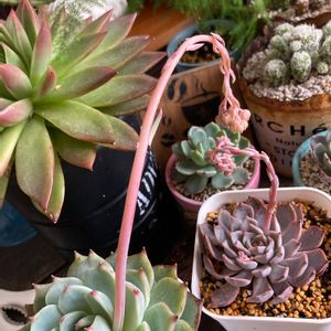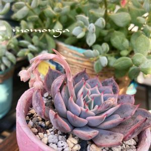 ピンクサラゴーザ🍀 咲きました😊✨ 花芽がでてから咲くまでにこんなに長く楽しめるなんて🤭 多肉植物最高です♪