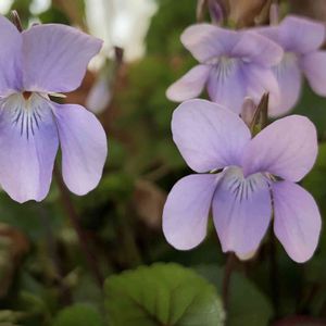 🧚♀️春の妖精🧚♂️ 数年前から我が家のバルコニーの あちらこちらのお花さん達と居住を🏡 シェアしているスミレちゃん🧚♀️ 今年もキレイに咲いてくれてありがとう💕 他のスミレをお迎えするのですがなかなか 定着せずこの子だけが残って毎年可憐な 姿を見せてくれます。💕🧚♀️🧚♂️ 名前がわかりません 下に写っている葉っぱは別の子の葉っぱです。でもあまり違和感がないですね。