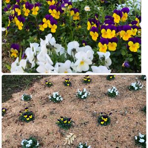 ビオラ、ノースポールちゃん 昨年11月に職場の小さな花壇に植えた ビオラちゃんワサワサ賑わいを見せて くれています。🎶 零れ種で育ったノースポールちゃんも 引き立ててくれています。😊💕 とっても可愛いです。✨✨✨