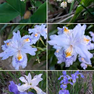 夕暮れ時のコンビニまでの 買い物ついでに少しウロウロして 出会いました🤗 💜💙🤍🩵💛💚🌿 シャガが綺麗に咲いていました💞 スズランは見頃がすぎちゃって(^_^;) コアヤメでしょうか?🤔 綺麗でした✨
