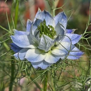 🍀ニゲラ🍀の 名前の由来は、ラテン語の「niger(黒い)」からきています。これは、ニゲラの種が黒いことから名付けられました。和名では「クロタネソウ」(黒種草)とも呼ばれています。 ニゲラは、花が終わった後にふくらんだ果実ができ、その中に黒い種が収まっていることから、このような名前がつけられました。また、花びらのように見える部分は実は萼片であり、花びらは退化してしまっているため、独特な印象を与えています。 ニゲラは、ドライフラワーやフラワーアレンジメントにも人気があります。その繊細な葉と個性的な花、そしてユニークな果実が魅力です。