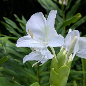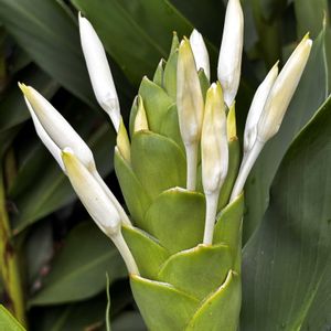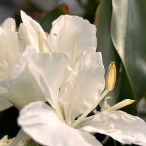 【ジンジャーリリー】《ショウガ科》 花言葉 「清らかな心」「高潔」「豊かな心」 「あなたを信頼します」 ジンジャーの花が咲いている姿が、蝶が群れて飛んでいるように見えるため「バタフライジンジャー」と呼ばれることがあります。また、甘くて良い香りと白いユリのような花姿からは「ホワイトジンジャーリリー」や「ジンジャーリリー」と呼ばれている