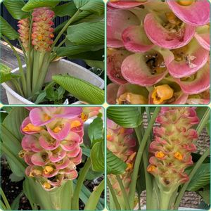 9/18 (木) ☆。.:*・゜ ①〜⑤🩷💗🤍クルクマ🤍💗🩷 学名❀✿Curcuma petiolata ※ショウガ科 ※ウコン属(クルクマ属) ♣️クルクマ属(ウコン属)の仲間には、ウコン(Curcuma longa)のように食用・薬用として利用される種類が多くあるほか、クルクマ・ペティオラータ(C. petiolata)など花を観賞する目的で栽培される種類もいくつかある。白やピンク色の美しい苞は重なってトーチのように見え、本来の花は苞の間に隠れるように目立たず咲く。♣️ 水生植物公園🏞にて過去pic📸📱💕