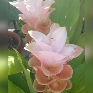 【鬱金】《ショウガ科》 💠今日のお花💠 ウコンの「花」と表現される部分は、実際には苞葉(ほうよう)と呼ばれる葉が変化したもので、 その中に小さな黄色い花が咲きます