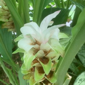 連日の暑さにも関わらずクルクマが咲いています。お出かけ先にて。グリーン、ピンク、白もあります。私はグリーンが好き😍タイやインド、カンボジアが原生地だそうです。でも今年は日本の方が暑いのでは?と思う程🥵💦 ネットからℹ️ ウコンの花はクルクマですか? ウコンの花はクルクマと呼ばれます。 ウコンは食用として改良された品種で、クルクマはバリエーション豊かな花色を観賞するために栽培されています。 花と思われている部分は花弁ではなく、苞葉と呼ばれる葉が変化したものです。 苞葉はロウのような質感でしっかりとしているため、丈夫で一か月近く美しい色を楽しませてくれます。